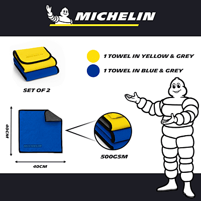 MICHELIN 500 GSM Pack of 2 (40x40 cm) Microfiber Cleaning Cloth for Car Double Sided, Super Absorbent, Lint-Free & Scratch-Free, Durable Ultra-Plush Cleaning Towel for Car, Bike & Glass